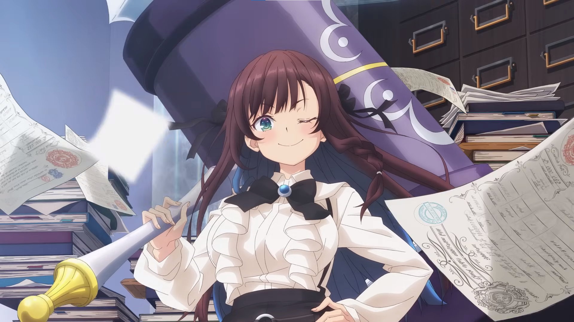 Фантастический мир, в котором живёт Алина Кловер, полон искателей приключений, покоряющих демонов. Для героини же, которая трудится простым секретарём гильдии и оформляет заявки на очистку подземелий самое главное – избежать большой бумажной волокиты и пораньше сбежать со службы. Вот именно поэтому когда в подземелье появляется могущественный Дракон, и количество работы у Алины увеличивается, она решает на время перевоплотиться в авантюристку и сражаться с нечистью. Конечно же, не из любви к опасным приключениям, а потому, что героиня этого аниме хочет уменьшить себе количество рутинной секретарской работы и побольше бездельничать дома!