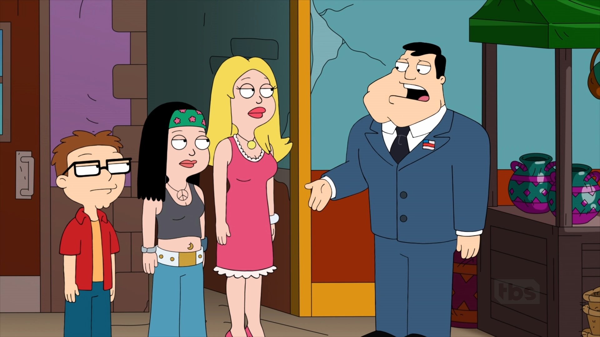 Глава семейства – Стэн Смит, сотрудник ЦРУ и закостенелый республиканец, который не готов поступиться своими принципами даже во имя родных. Он любит использовать своё положение, чтобы контролировать (во всяком случае, пытаться) жену и детей, а также – тот ещё любитель пошмалять из табельного оружия. Его жена Франсин – привлекательная блондинка, вынужденная сидеть дома и заниматься хозяйством. Все её попытки устроиться на работу или найти постоянное хобби разбиваются о неготовность Стэна делить свою жену со своими увлечениями. Несмотря на некоторую наивность, эта женщина отличается терпимостью к окружающим и добротой сердца. Сразу и не скажешь, что в юности она была той ещё оторвой. Старшую дочь четы Смитов зовут Хейли. Она студентка колледжа, которая обожает участвовать в акциях протеста и потусоваться со своими друзьями-хиппи. Хейли то и дело спорит со своим отцом, по причине диаметрально разного мировоззрения. Однако им удаётся уживаться под одной крышей. Младшего сына зовут Стив. Это подросток, чьи мечты в основном сосредоточены вокруг мыслей о том, как бы потрогать женскую грудь и лишиться девственности. Впрочем, время от времени он так же играет в ролевые игры и настолки со своими друзьями.